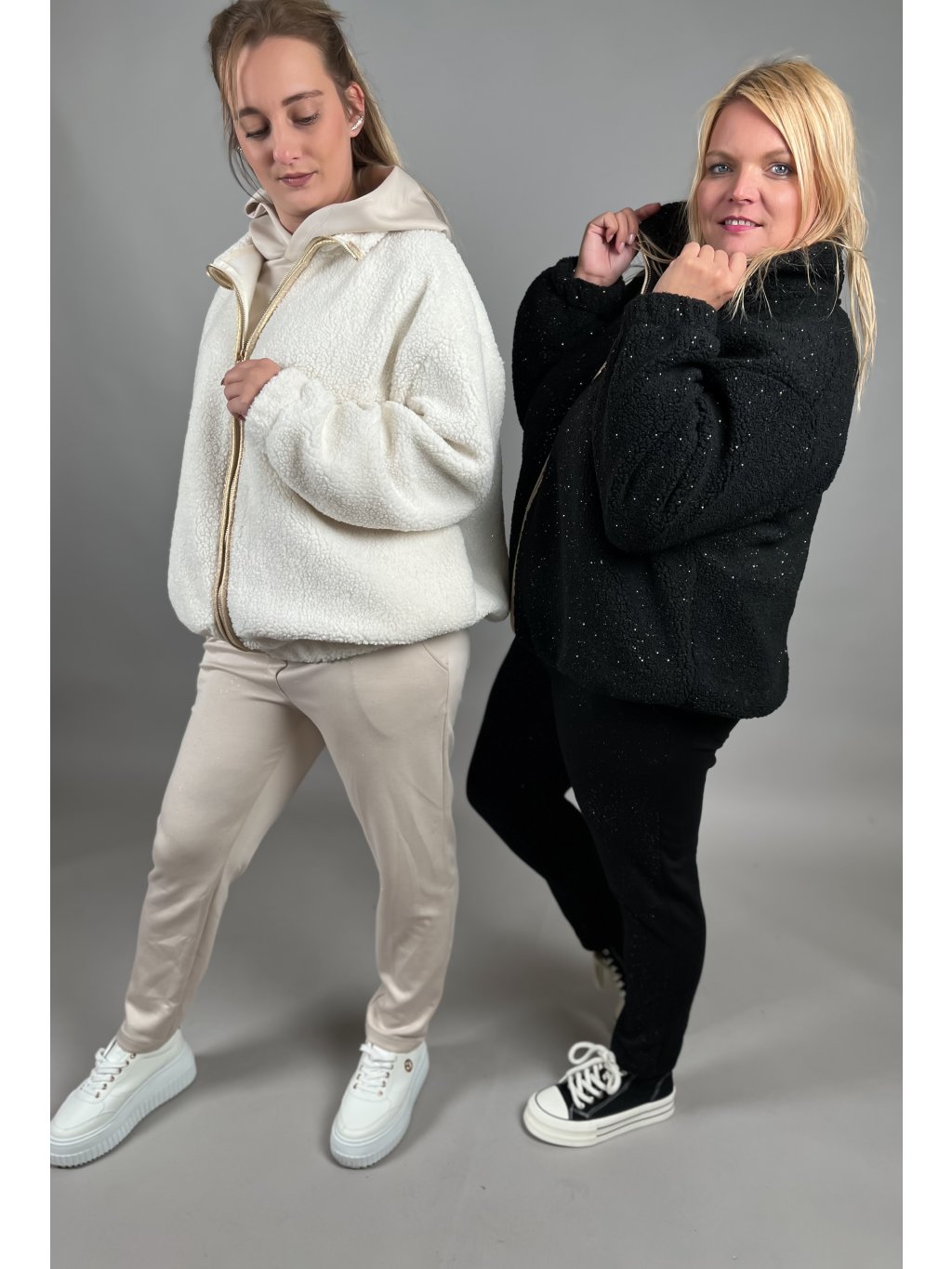 ONE SIZE kabát se zlatými třpytkami zapínání na knoflíky kabát s kapucí a kapsami kabátek nemá podšívku spodní část kabátu střižená do kulata ...