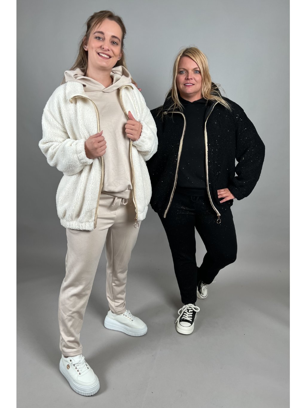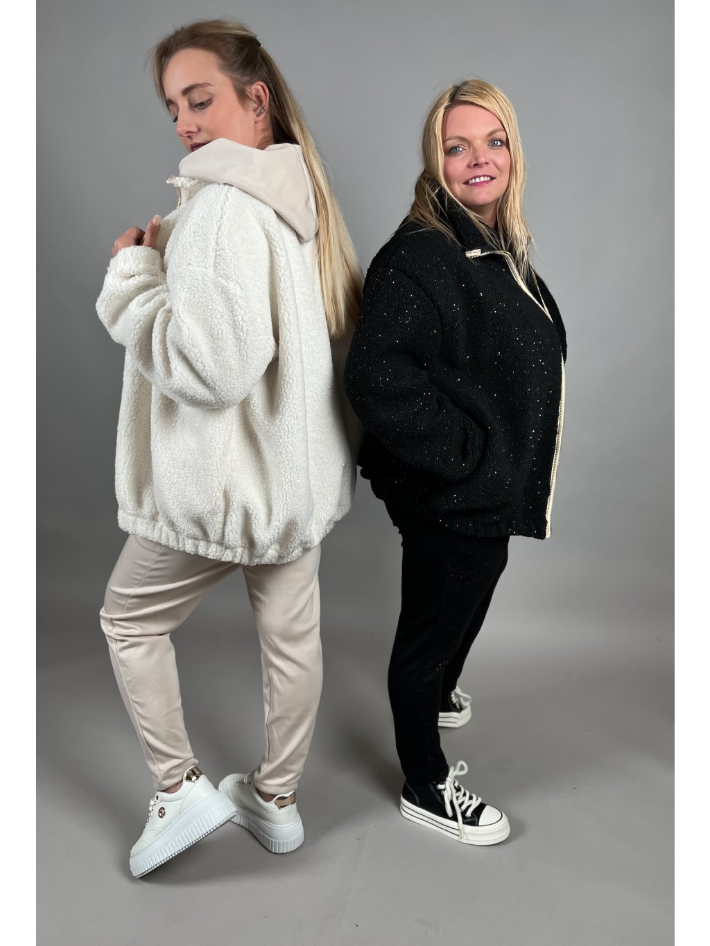 ONE SIZE přechodový kabátek bez podšívky černo béžový kabátek zapínání na knoflíky kabátek s kapucí kabátek nemá kapsy Rozměry: UNI-prsa 132 boky...