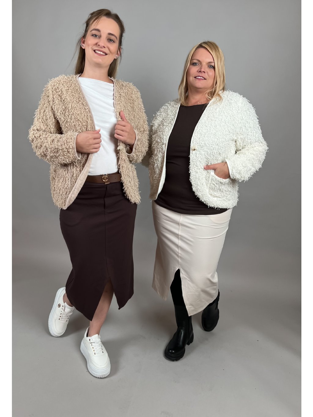 Úpletový kardiganový kabatek modelky fotí vel. S/M a L/XL strečový kabatek tygrové lemy rukávů Rozměry: S/M-prsa 108 boky 108 délka 92 rukáv 67L/XL-prsa 112 boky 112...