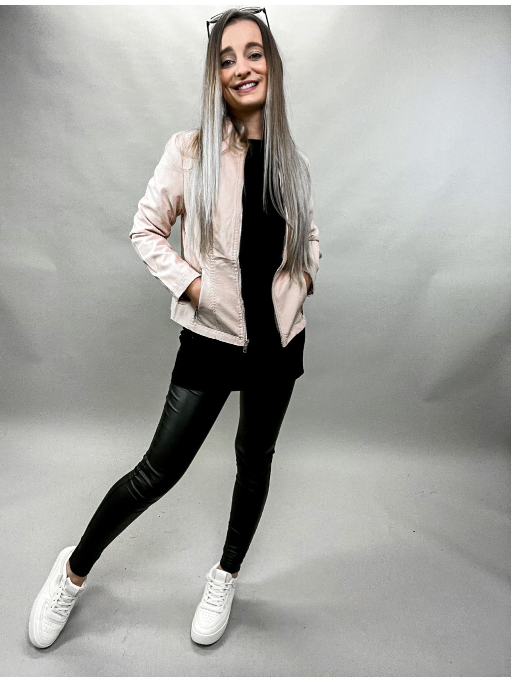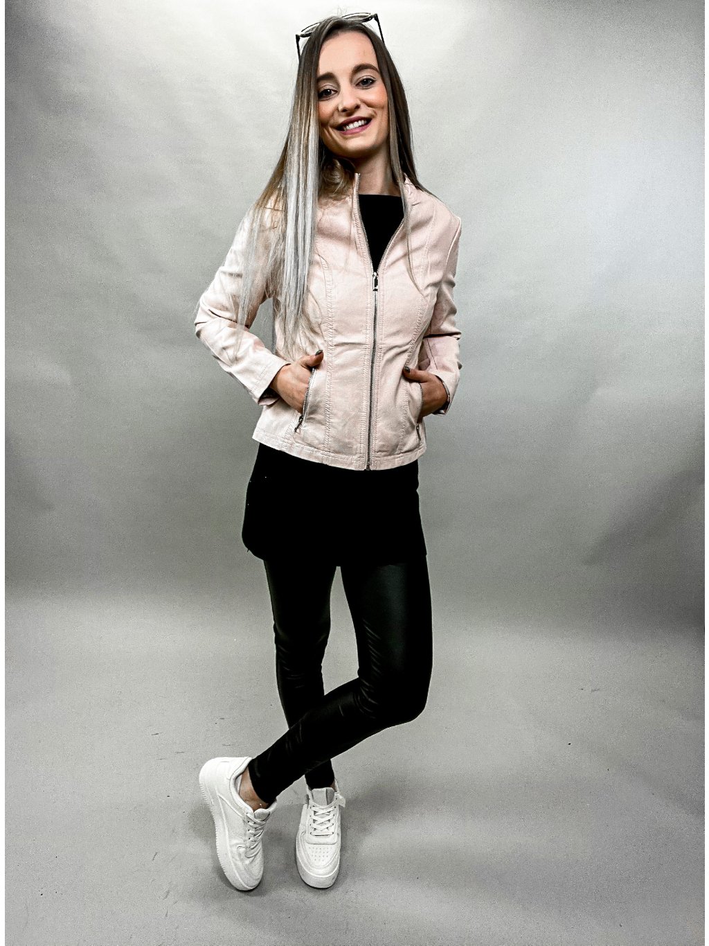 měkká koženková bunda rovné zapínání kapsy modelky fotí vel,. S a 2XL Rozměry: S-prsa 94 boky 92 délka 56 rukáv 70M-prsa 98 boky 96 délka 57 rukáv 71L-prsa 102 boky...