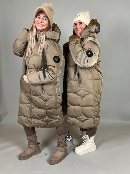 zimní bunda s ozdobným štítkem na rukávu (na suchý zip) stoják s kapucí modelky fotí velikost: Míša M, Andrejka XL kapuce nelze odepnout Rozměry: M-prsa 118...