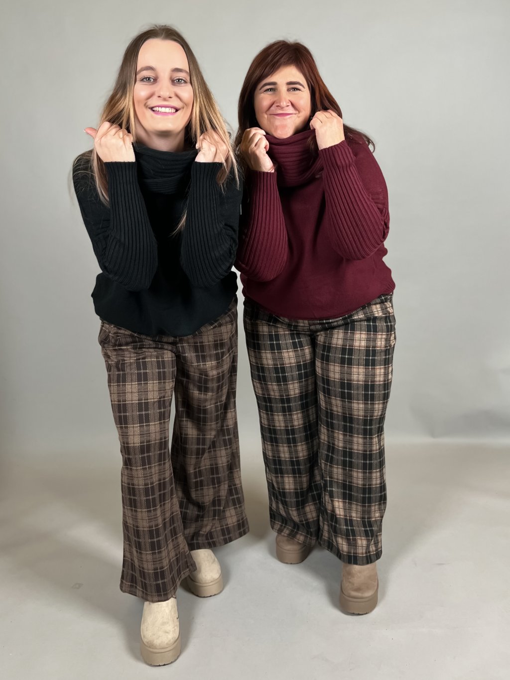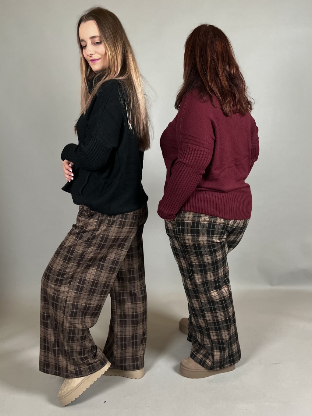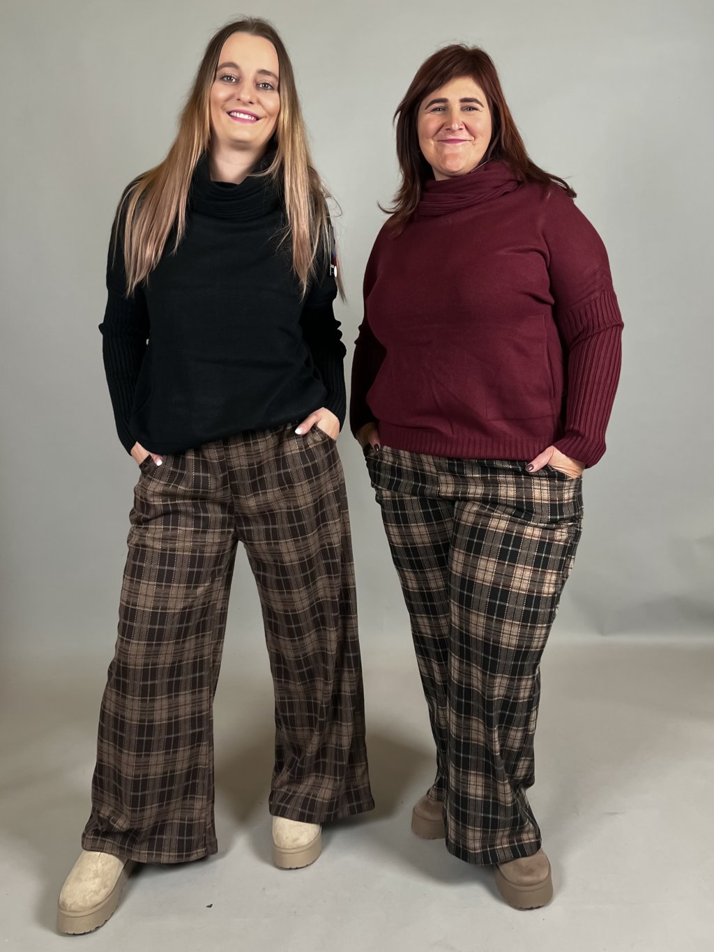 - strečové kostkaté kalhoty