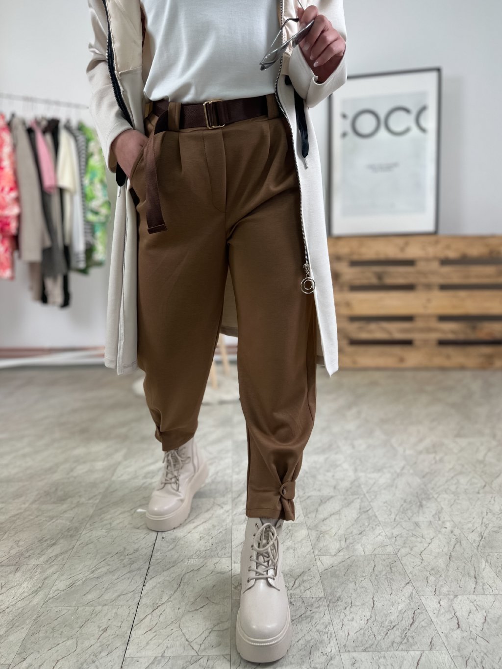 - strečové kalhoty z máslového materiálu