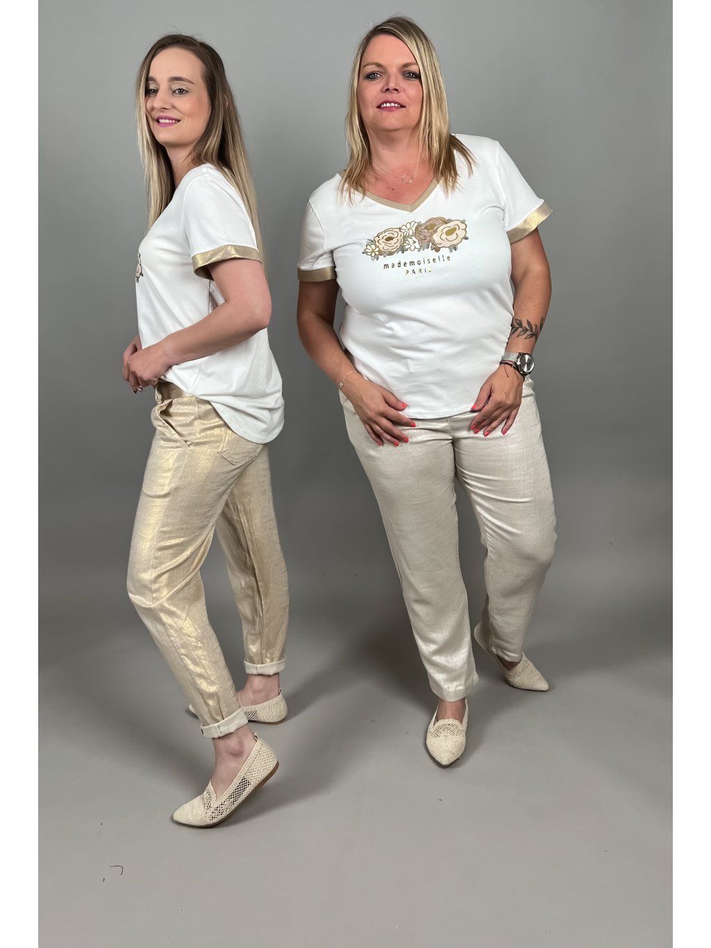 ONE SIZE kalhoty s páskem a širokými nohavicemi máslový materiál kapsy Rozměry: UNI-pas 70-90 boky 116 délka 99 Míry modelek jsou k dispozici...