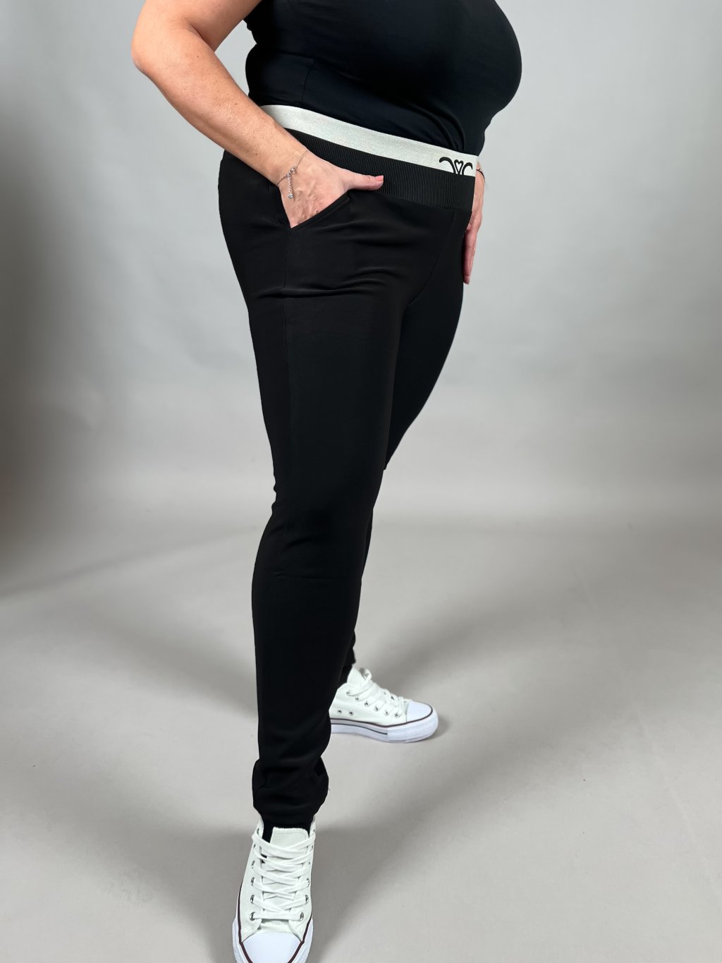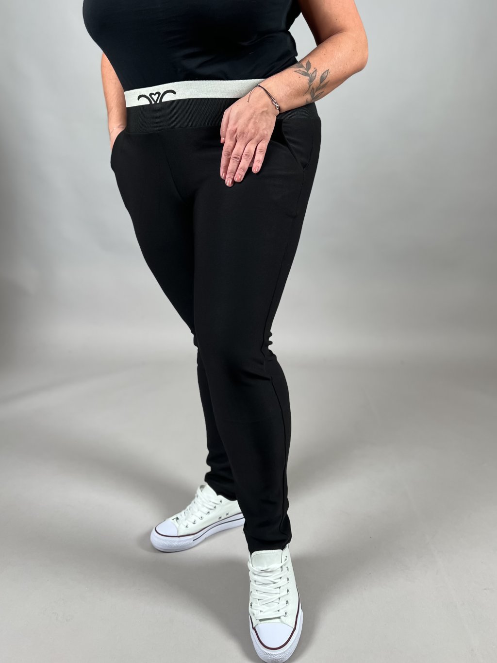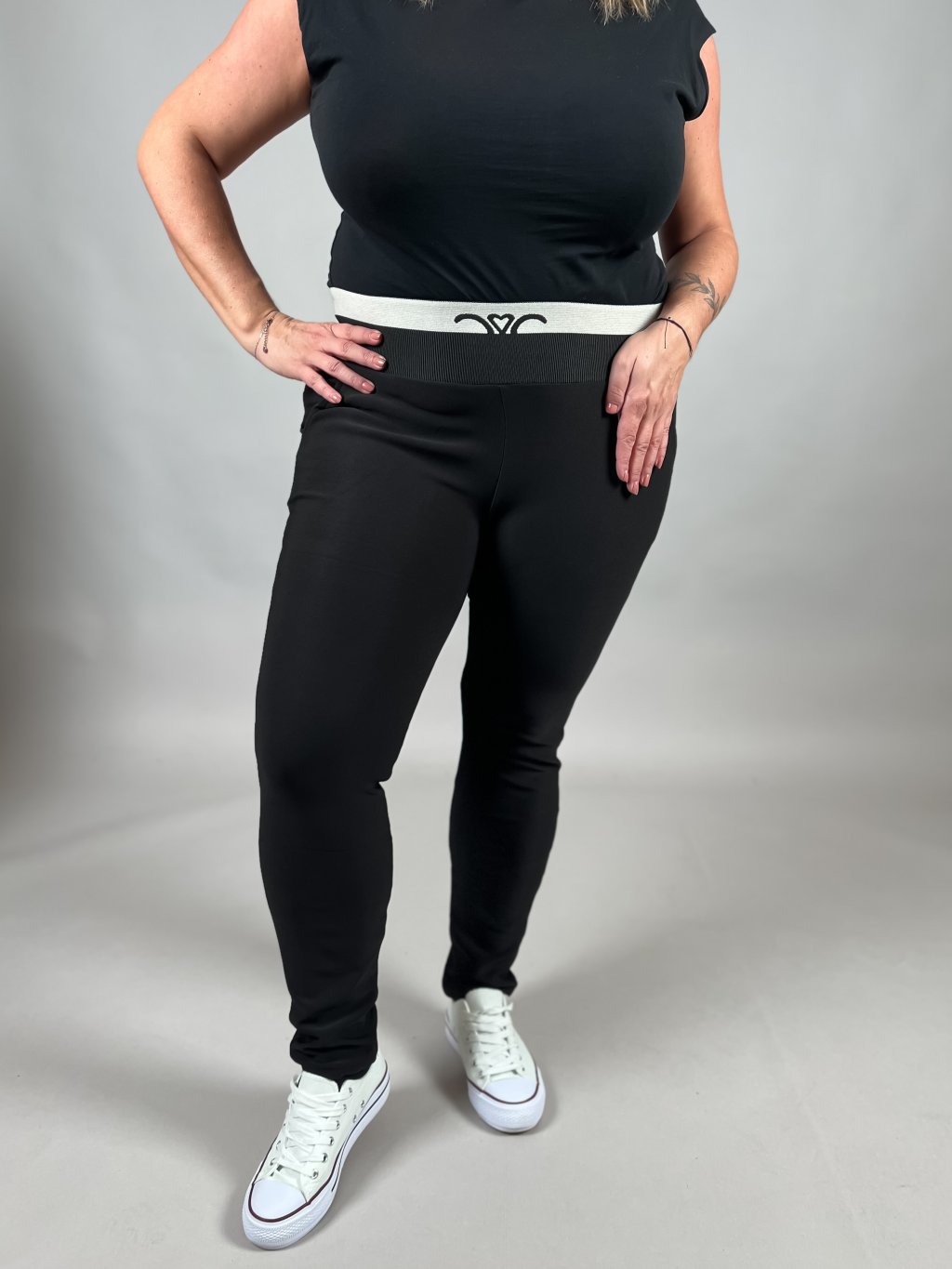 ONE SIZE strečové kalhoty na gumu lesk na nohavicích kapsy tkanička v pase Rozměry: UNI-pas 70-80 boky 104 délka 95 Složení: 75% bavlna 23% polyester 2% elastan...