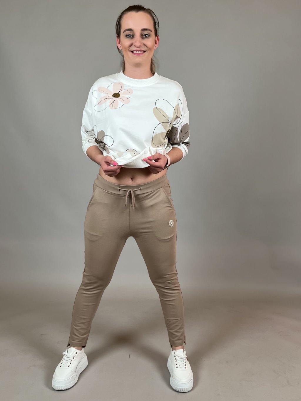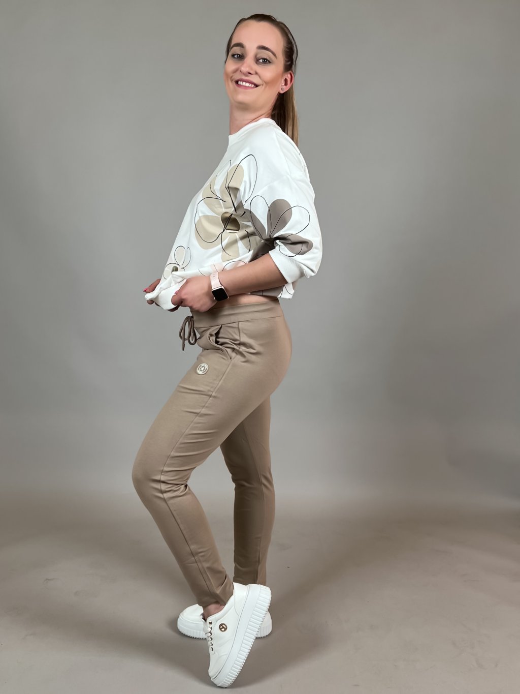 - strečové bavlněné tepláky