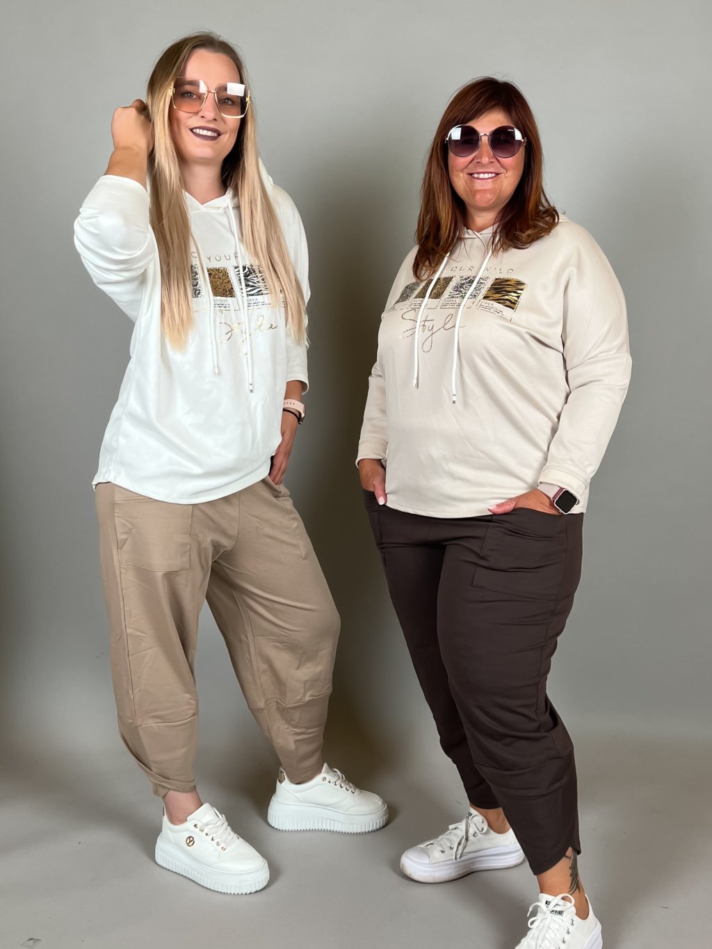 ONE SIZE strečové tričko s kapucí máslový materiál trička tričko s tiskem Rozměry: UNI-prsa 126 boky 120 délka 71 rukáv 69 Míry modelek jsou k...