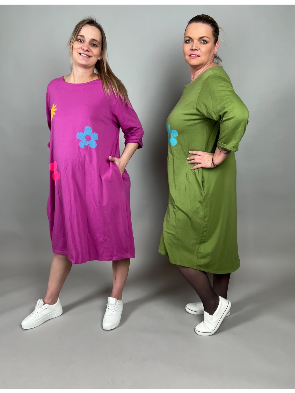 příjemné šaty s kapsami v pase na gumu rozparek na spodní části sukně modelky fotí vel. 38 a 44 Rozměry: 38-prsa 92 pas 58-80 boky 122 délka 133 rukáv 2940-prsa 96 pas...