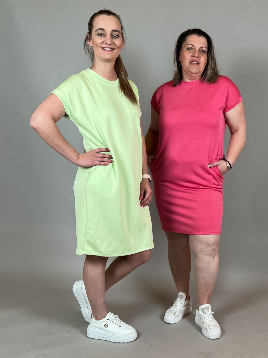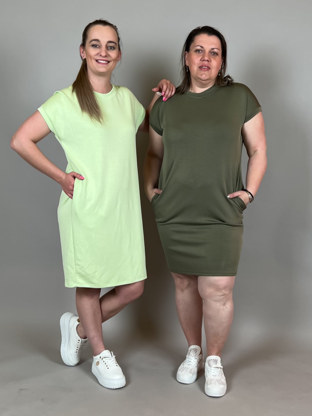 Šaty se stojáčkem a kapsami modelky fotí vel. 40 a 44 příjemné strečové šaty heboučké šaty (mikroplyš) Rozměry: 40-prsa 98 boky 102 délka 102 rukáv 5842-prsa 102 boky 106...