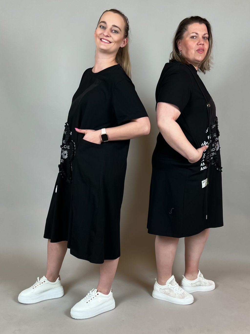 šaty s kapsami a kapucí modelky fotí vel. 42 a 46 příjemné šaty strečová vrchní část šatů gumička na stažení (zadní část) Rozměry: (obvod bez natažení)...