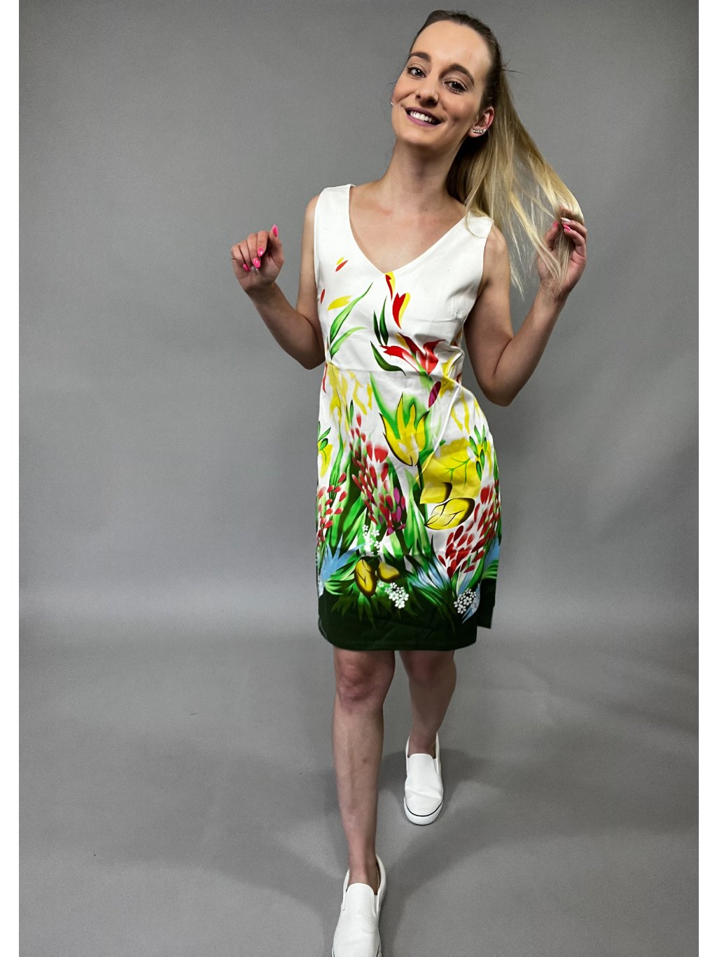 Příjemné letní šaty madeirová přední část modelky fotí vel. S a 2XL Rozměry: S-prsa 88 boky 98 délka 93 rukáv 16M-prsa 92 boky 102 délka 94 rukáv 17L-prsa 96 boky 106...