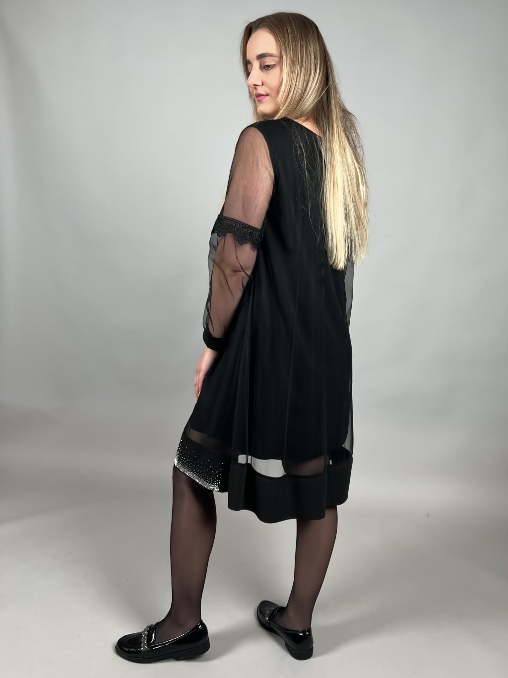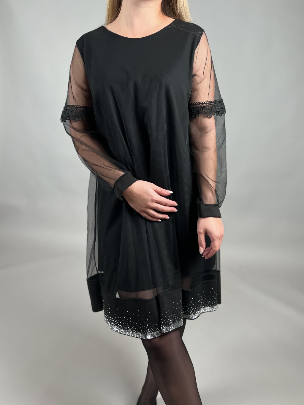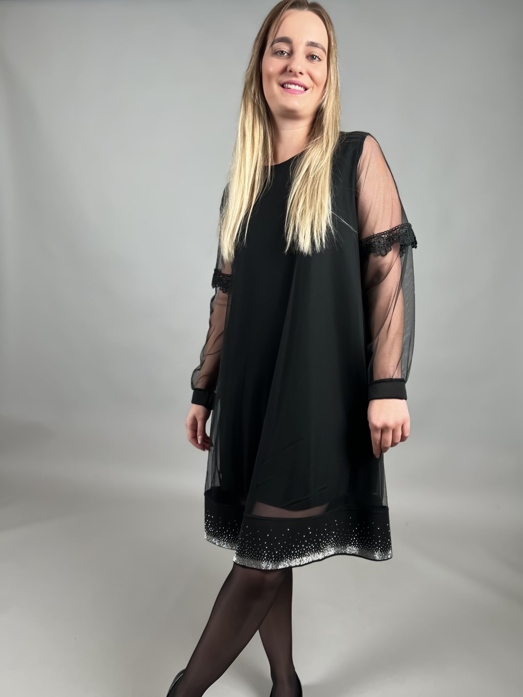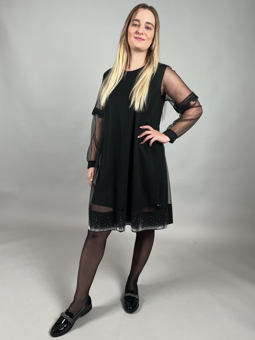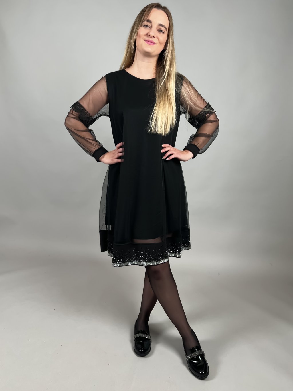 Společenské šaty s flitry Rozměry: S/M-prsa 92 pas 70 délka 91 rukáv 58 Složení: 35% bavlna 65% polyester Míry modelek jsou k dispozici zde: Míry modelek
