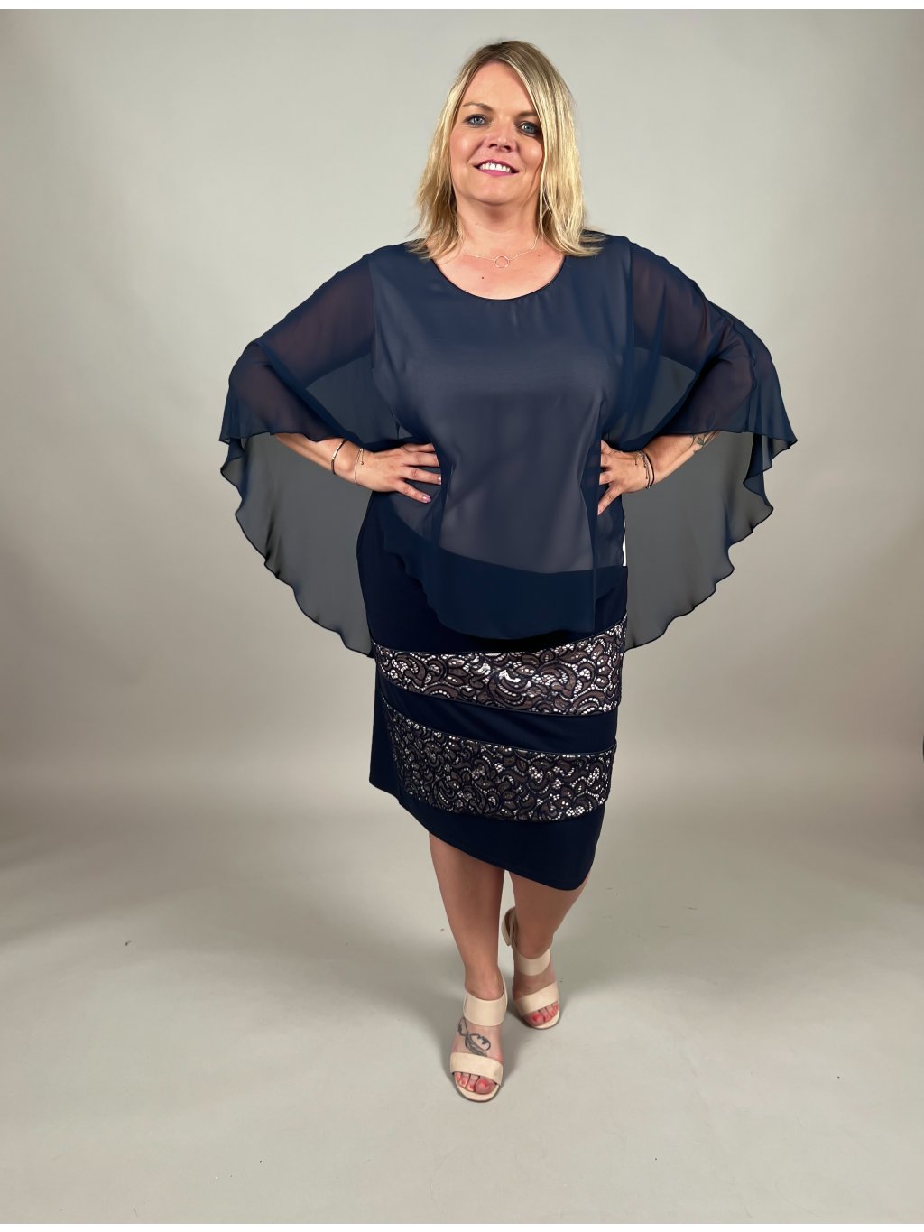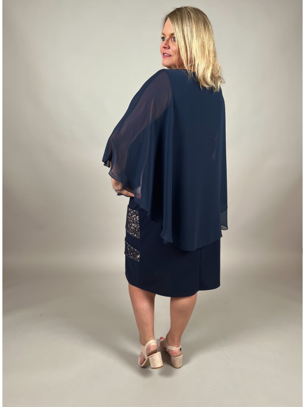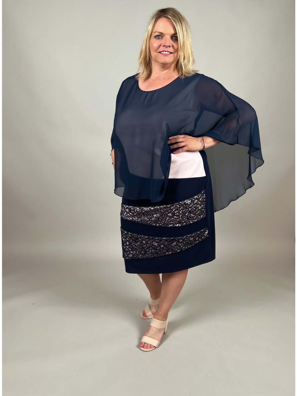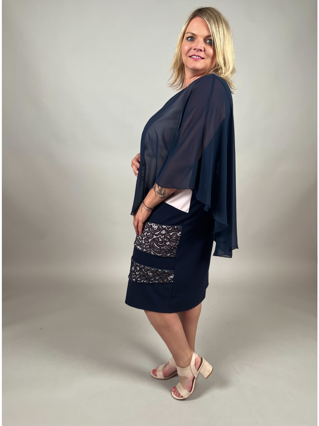 Společenské pouzdrové šaty zip na zádech modelka fotí vel. 38 šaty tmavě modré s růžovou Rozměry: 38-prsa 80 boky 86 délka 92 rukáv 1640-prsa 84 boky 90 délka 93 rukáv...
