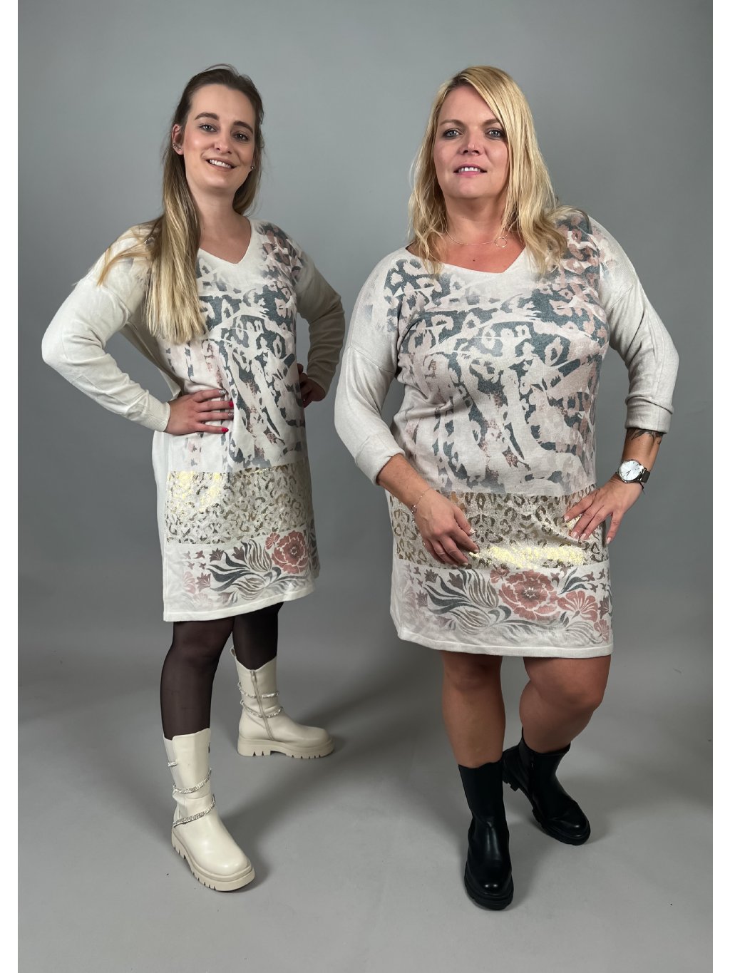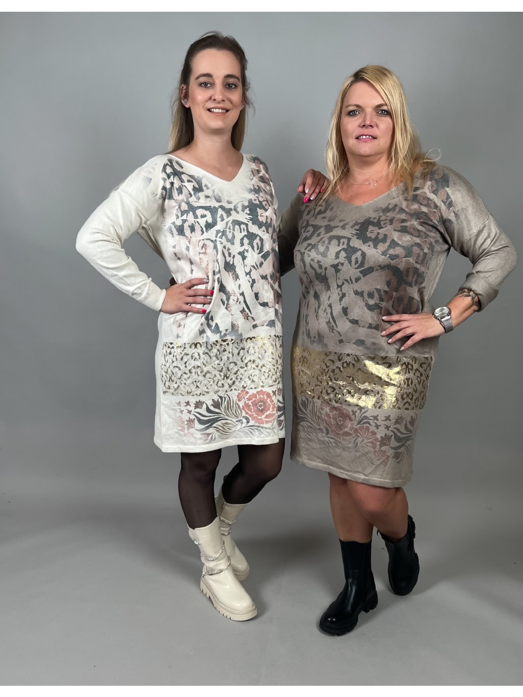ONE SIZE strečové šaty s ozdobným štítkem máslový materiál šaty nemají kapsy Rozměry: UNI-prsa 112 boky 84 délka 94 rukáv 69 Míry modelek jsou k...