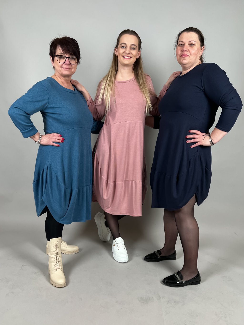 ONE SIZE strečové , úpletové šaty se stojáčkem 3/4 rukáv kapsy na přední části šatů Míry modelek jsou k dispozici zde: Míry modelek Rozměry: (obvod...