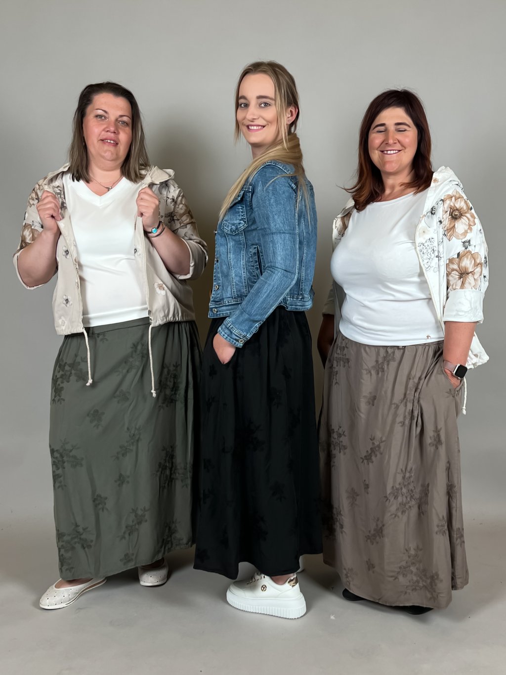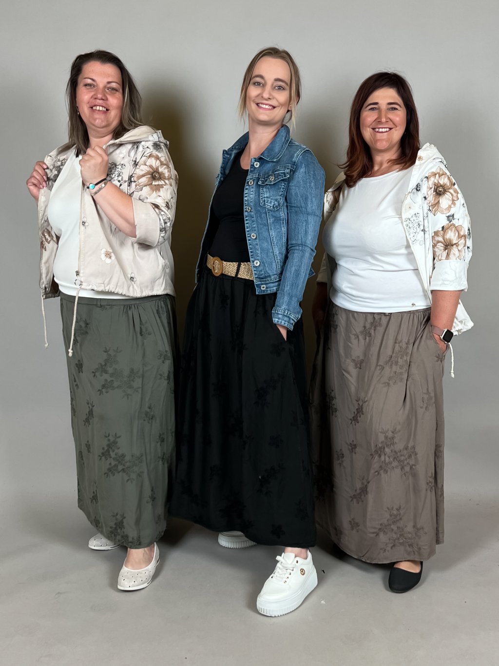 ONE SIZE vzdušná sukně s kapsami v pase na gumu na spodní části sukně gumičky Rozměry: UNI-pas 66-100 boky 108 délka 84 Míry modelek jsou k dispozici...