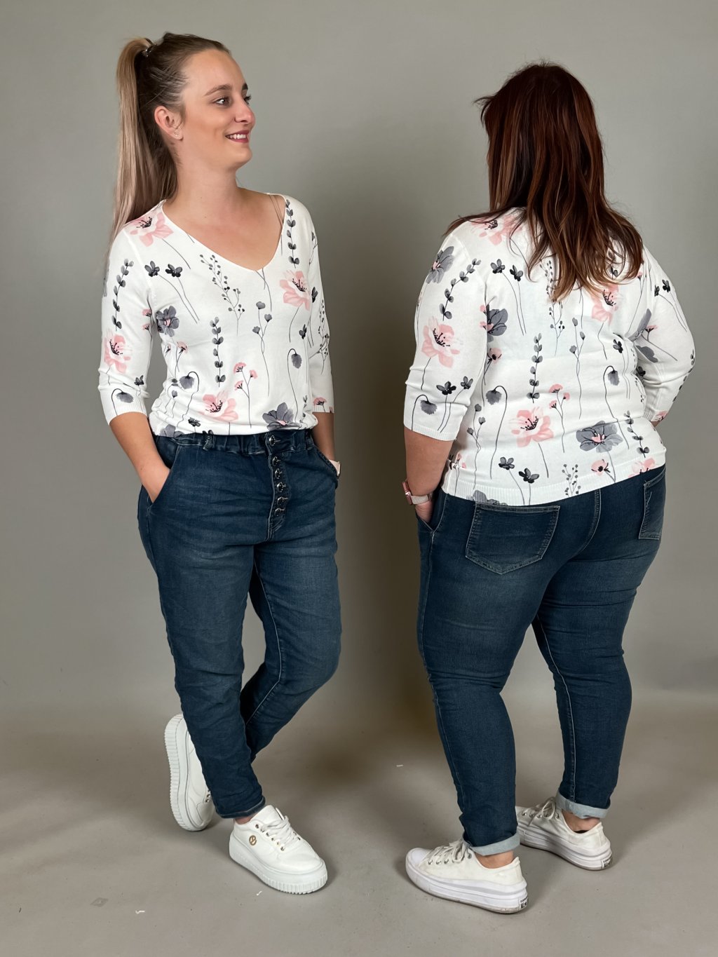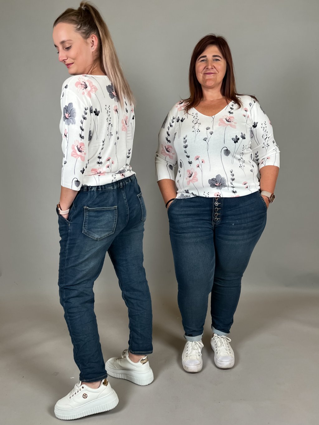 Svetřík BETTY/růžovo šedé kytky