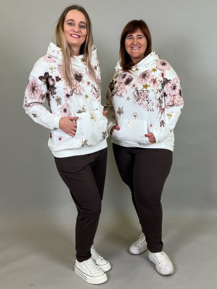 strečová, bavlněná mikina s kapucí klokanka modelky fotí velikost: Míša S/M, Andrejka L/XL ozdobný zip na kapuci Rozměry: S/M-prsa 114 boky 96 délka 72...