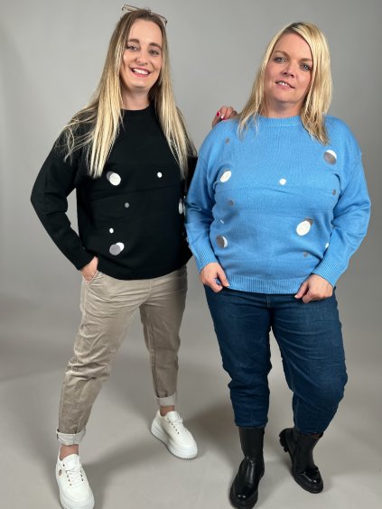 ONE SIZE strečový svetr příjemný, jemný materiál ozdoba koleček na svetru svetr s kulatým výstřihem Rozměry: (obvod bez natažení) UNI-prsa 118...