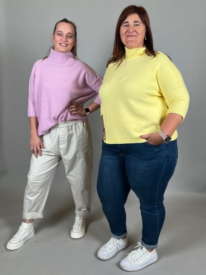 ONE SIZE strečový svetr se stojákem 3/4 rukáv příjemný svetr Rozměry: UNI-prsa 138 boky 136 délka 58 rukáv 49 Míry modelek jsou k dispozici...