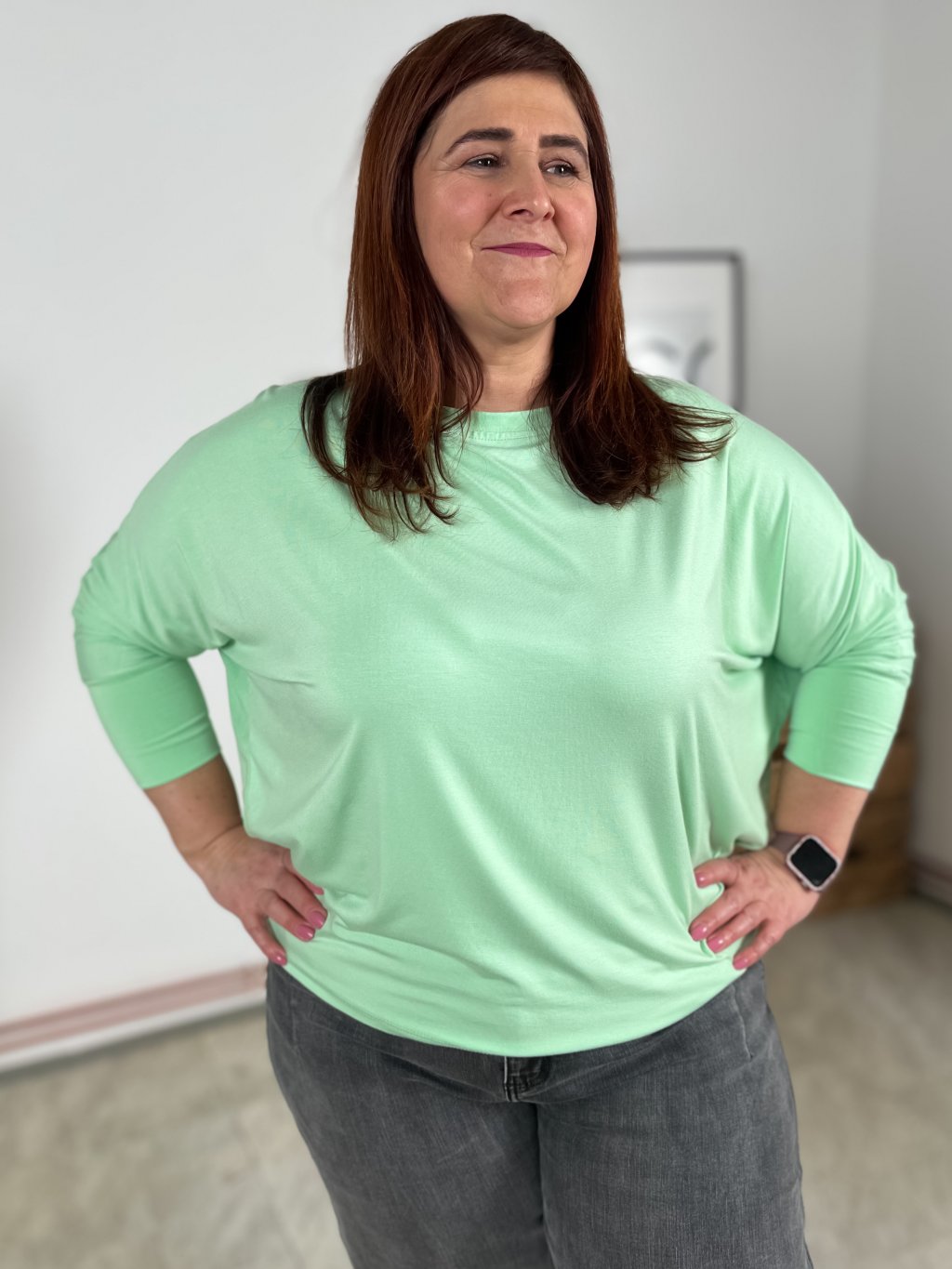 Strečové tričko rozparky ze stran příjemné tričko modelky fotí vel. S/M a L/XL Rozměry: S/M-prsa 104 boky 106 délka přední 64 zadní 67 rukáv 54L/XL-prsa 112 boky 114...