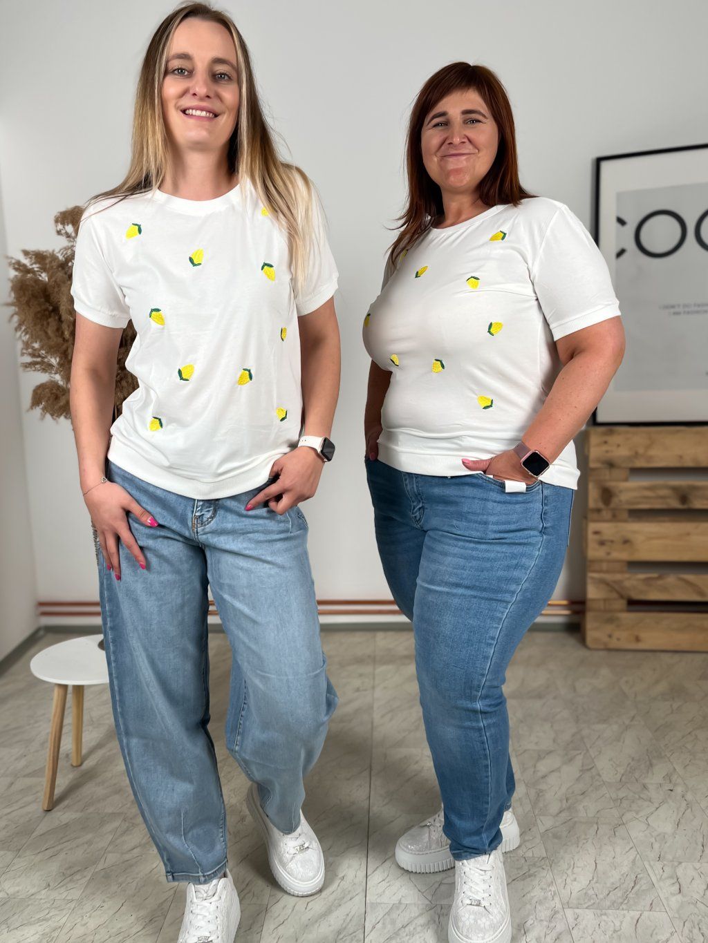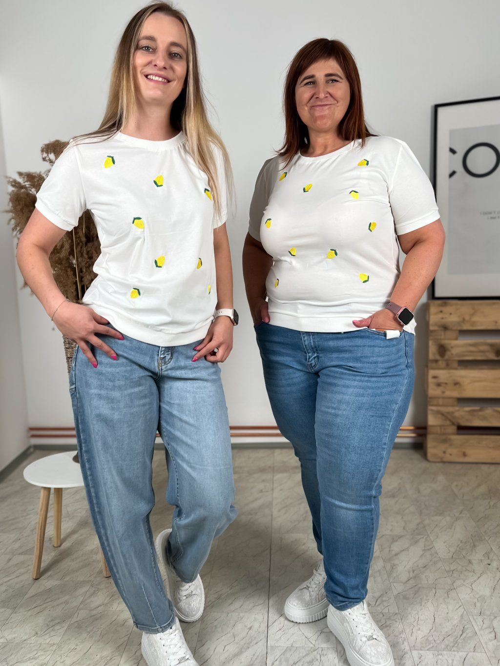 strečové , bavlněné tričko modelky fotí velikost: Míša S/M, Andrejka L/XL vyšívané citronky na tričku spodní část trička do rantlu Rozměry: (obvod bez...