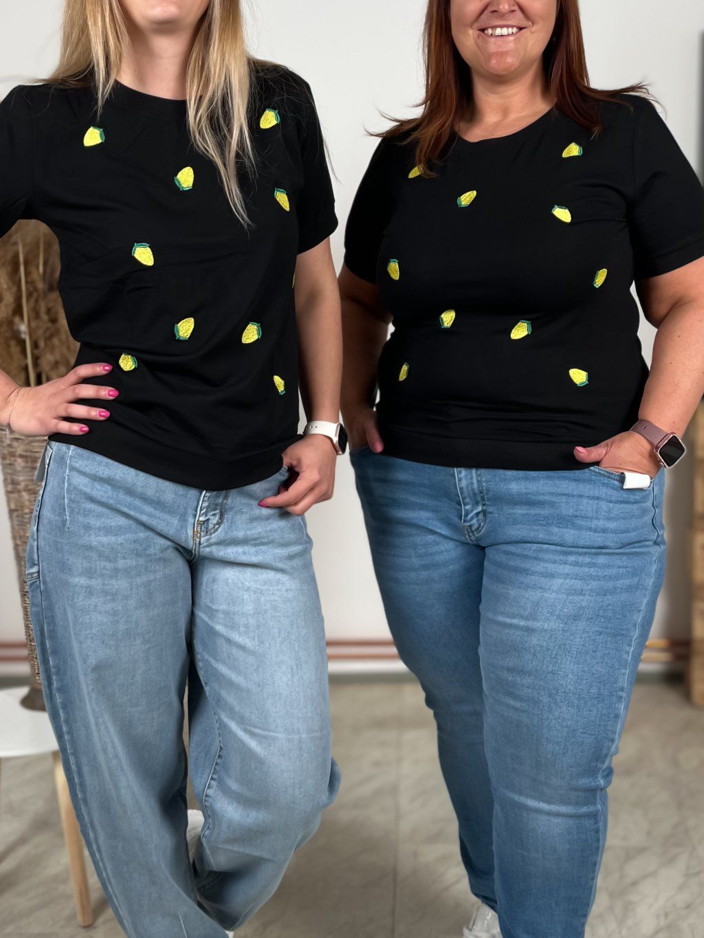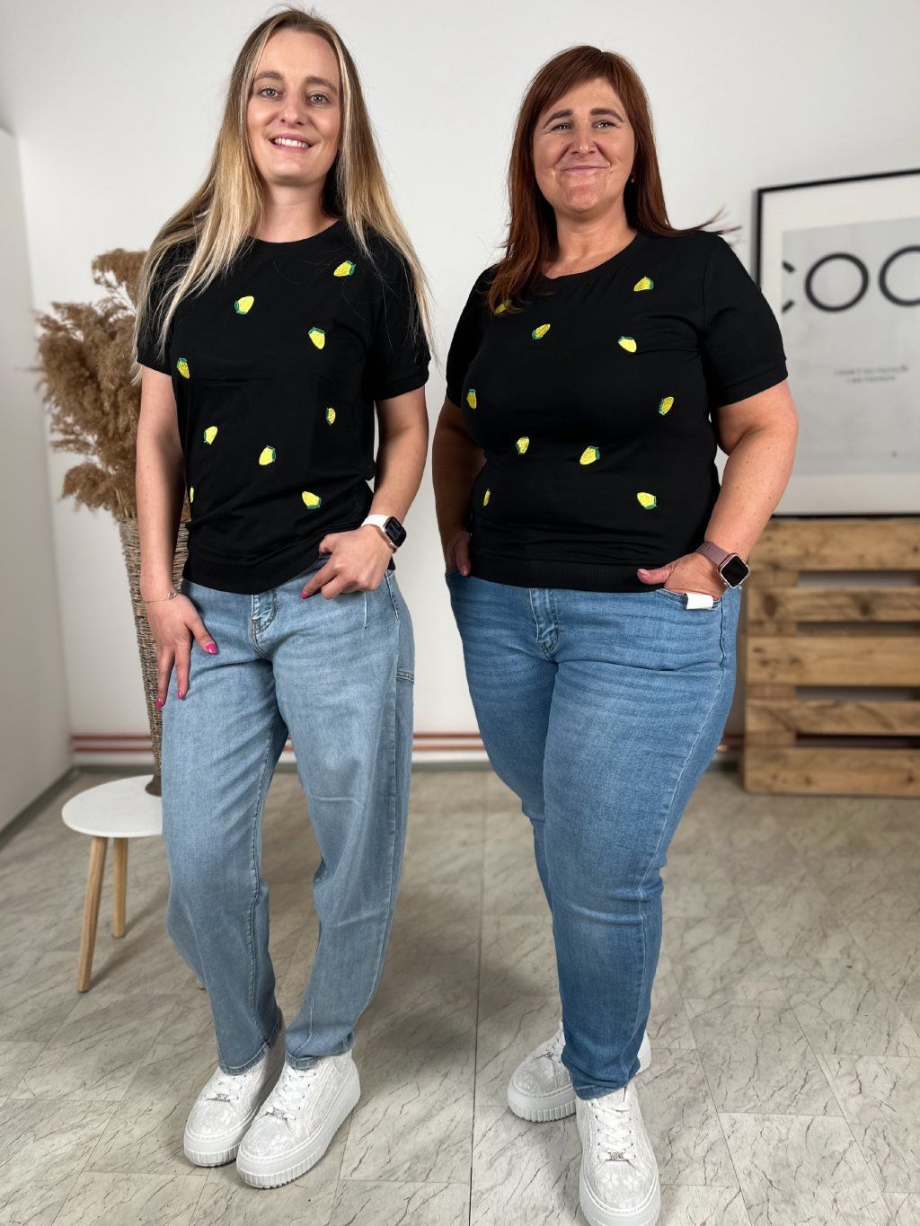 strečové , bavlněné tričko modelky fotí velikost: Míša S/M, Andrejka L/XL vyšívané citronky na tričku spodní část trička do rantlu Rozměry: (obvod bez...