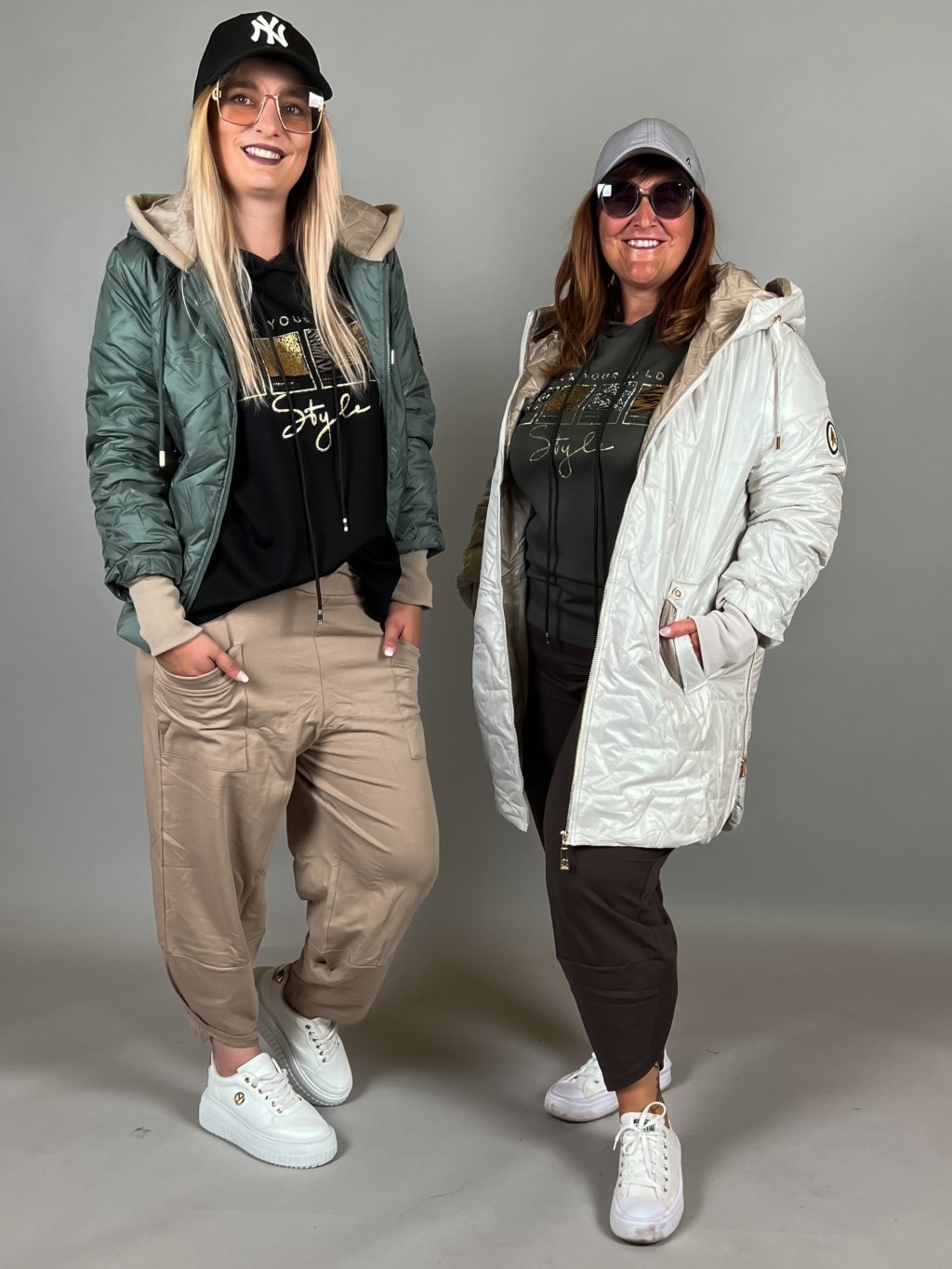 strečové tepláky modelky fotí vel. S/M a L/XL tkaničky na stažení pasu kapsy volný střih tepláků Rozměry: S/M-pas 66-86 boky 108 délka 95L/XL-pas...
